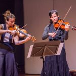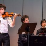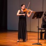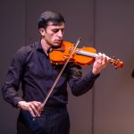 „Menuhins Encores“ lautete der zweite Teil des Abends. Gemeint waren beliebte Zugaben für die Geige. Sie führten schwungvoll durch die Zeiten: Enescu (spritzig: Julius Beck), Saint-Saens (hervorragend: Hovhannes Partizpanyan), nochmals Brahms (ausgefeilt: Ieva Eidukonyte), Kreisler (beschwingt: André Robles Field), Sarasate (virtuos: Ayumu Sasaki), Bernstein (souverän: Sophie Heinrich).