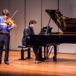Drei Teile, drei musikalische Ideen. Zunächst waren die drei großen B angesagt: Bach, Beethoven, Brahms, mit ganzen Sonaten oder einzelnen Sätzen. Zu Beginn Bach für Geige und Cembalo (John Doig, Liene Orinska). Dann Beethovens op. 30 Nr. 3 mit Julius Beck (Geige) und Stefan Veskovic, der mehrere Streicher am Klavier begleitete. Aus allen drei Brahms-Sonaten für Klavier und Violine wurde musiziert.